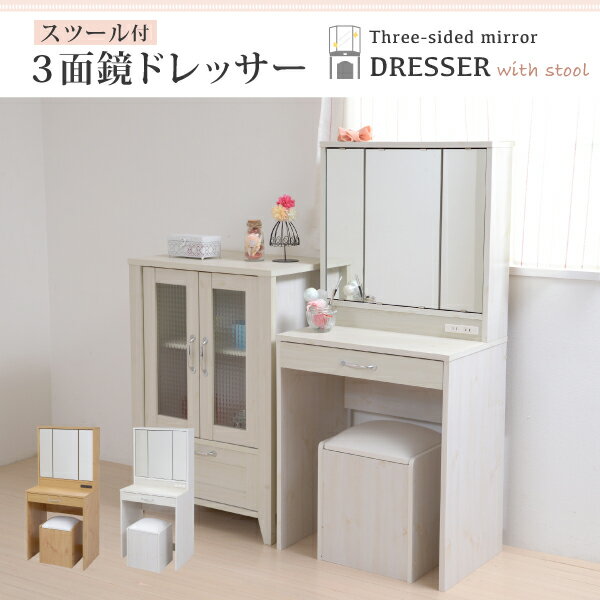 ![]() 価格: 14,580円 レビュー評価:0.0 レビュー数:0 ■商品説明 メイクアップには3面鏡が便利。3面鏡は扉になっており、扉の向こう側には収納空間が広がります。可動棚仕様なので、マニキュアなどの小物からロングボトルなど収納物に合わせて調節可能です。浅めの引出しや、収納可能な空間のあるスツール付と、コンパクトながら収納空間充実の仕様となっています。ほのかなカントリーテイストで、可愛くどんな部屋にもマッチします。■本体サイズ[外寸] (ドレッサー)幅60.5×奥行41.5×高さ130.5cm (スツール)幅33.0×奥行29.5×高さ42cm■その他サイズ[内寸] 【ドレッサー】 (引出し)幅53×奥行33×高さ5(有効7)cm (左ミラー扉内収納部)幅11.5×奥行9×高さ48.0cm (中央ミラー扉内収納部)幅25.0×奥行9×高さ48.0cm (右ミラー扉内収納部)幅11.5×奥行9×高さ48.0cm (作業面)幅60×奥行24.5cm (左 (更新日時:2018/12/05 11:50) Supported by 楽天ウェブサービス |